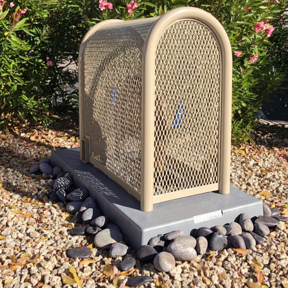 These cages come with recessed Lock Shield Brackets. This reduces the foot print of the enclosure and can be installed right up to a meter box or sidewalk.